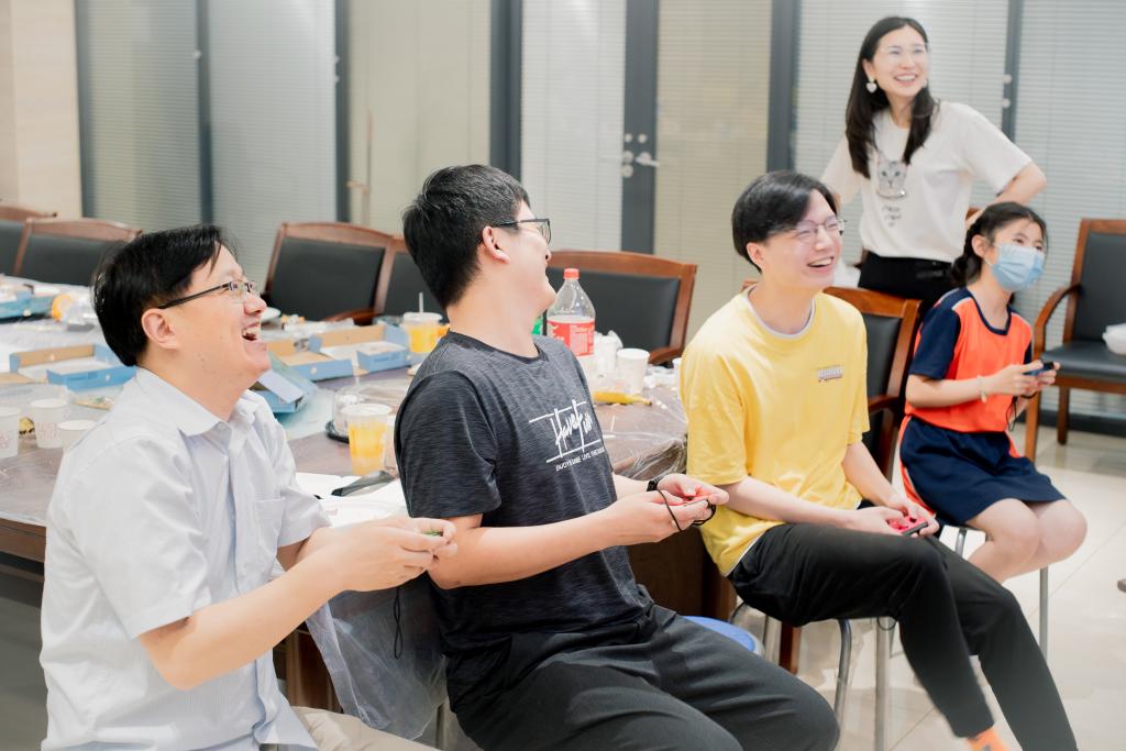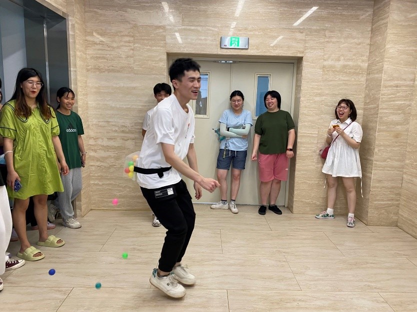 “中了!中了!”套圈的项目场地上,大家齐声喊道。由金红林、汤子建、李瓅、李礼四个课题组联合举行的师生游园会正在如火如荼的进行中。“左,右,左,右……”在另一侧,随着口令起起落落,两人三足的游戏也进入了高潮,“这个项目很考验两人的默契程度,并且随机组队,也可以认识不同的课题组的学生,增强了大家之间的交流。”金红林老师表示,在此活动中以一种更为轻松有趣的形式与学生深入交流,在体验趣味活动的同时也促进了师生之间相互学习、共同配合。