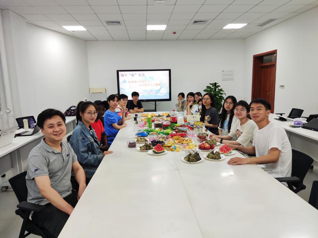 万水千山‘粽’是情,甜粽咸粽啥都行,何春江课题组的师生正相聚一起品鉴粽子;李姗课题组与颜彦课题组开展联谊活动,你画我猜、Switch对决、狼人杀好不热闹;陈振夏老师邀请同学们一同烹饪“双水双绿”小龙虾料理;李锦铨、姚帆、张晓妍、陶伟伟课题组纷纷开展茶话会,师生分享讲述了烽火战国时期,屈原从励志报国到以身殉国的伟大爱国主义情怀,为外国留学生阐述中国端午文化,一同观看电影《狙击手》,重温中国人民志愿军浴血奋战、舍生忘死的大无畏革命精神。