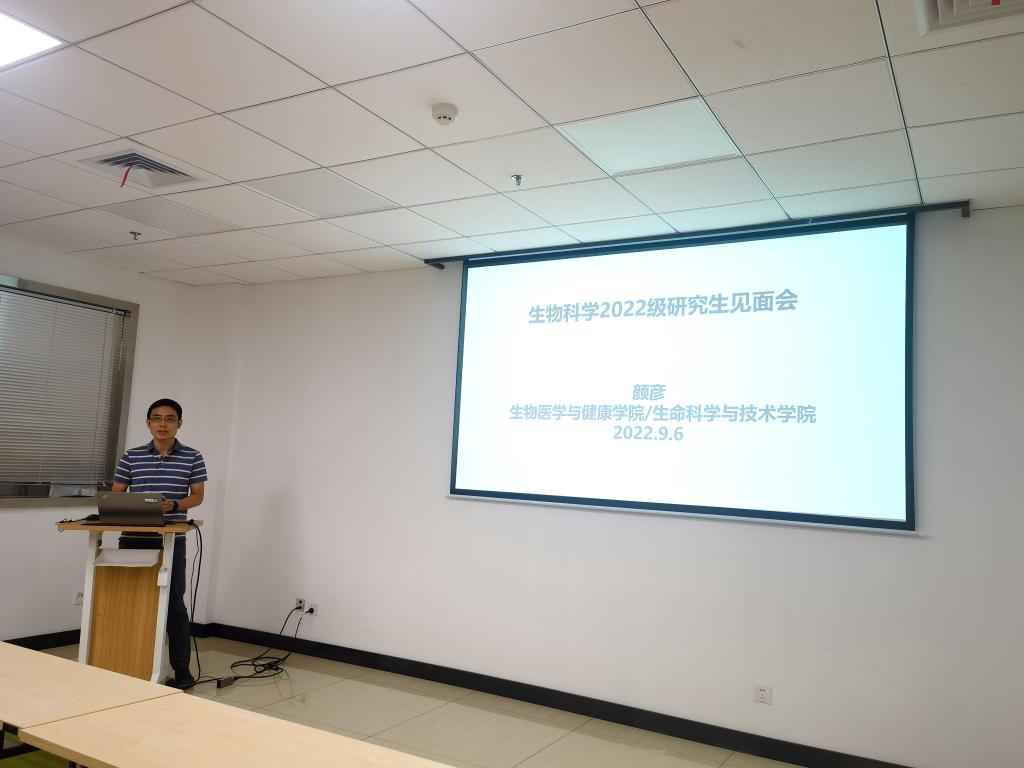 在导师面对面环节,颜彦老师作为教师代表与新生交流了自己的成长经历。从农业大学初遇“基因遗传”的奥秘,到研究生开展独立科学研究,再到只身前往异国求学,过往的故事随着一张张幻灯片铺展开来。当谈到研究生需要具备的素养,他认为研究生要积极主动,与导师保持沟通;要追求卓越,对每件事细致认真;要触类旁通,思维从点到面;要迎难而上,主动化解科研难题;要自我激励,不断拓展科研思路。来自肿瘤生物学的硕士新生李帆表示,老师以自身的经历,激励着新生研究生们积极主动、追求卓越、触类旁通、迎难而上、自我激励,“愿我将不忘初心,奋发前行!”